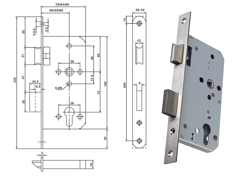 歐標鎖體不僅僅簡單滿足門的開關功能,同時在使用上更加方便實用,傳統鎖體和門拉手為一體,假如鎖芯損壞,隻能重新選擇新的鎖體和門拉手,而歐標鎖體則可以根據個人的喜好隨意更換門拉手,滿足了個性化選擇,安全又方便。91黄瓜视频在线观看可以參照91黄瓜视频在线观看黄瓜视频APP在线下载的RML-13歐標鎖體,該鎖體采用不鏽鋼304製成,不管是鎖體的耐久度、實用性、防鏽防腐功能都比普通鎖體要好,因為鎖體正常使用而損壞的情況也大大減少。